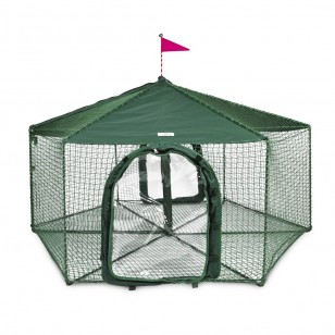 Fully enclosed the Gazebo sits on any flat surface and can be moved easily from place to place. An overhead zipper allows easy access to your pet and has a safety clasp to prevent your pet from opening and escaping.