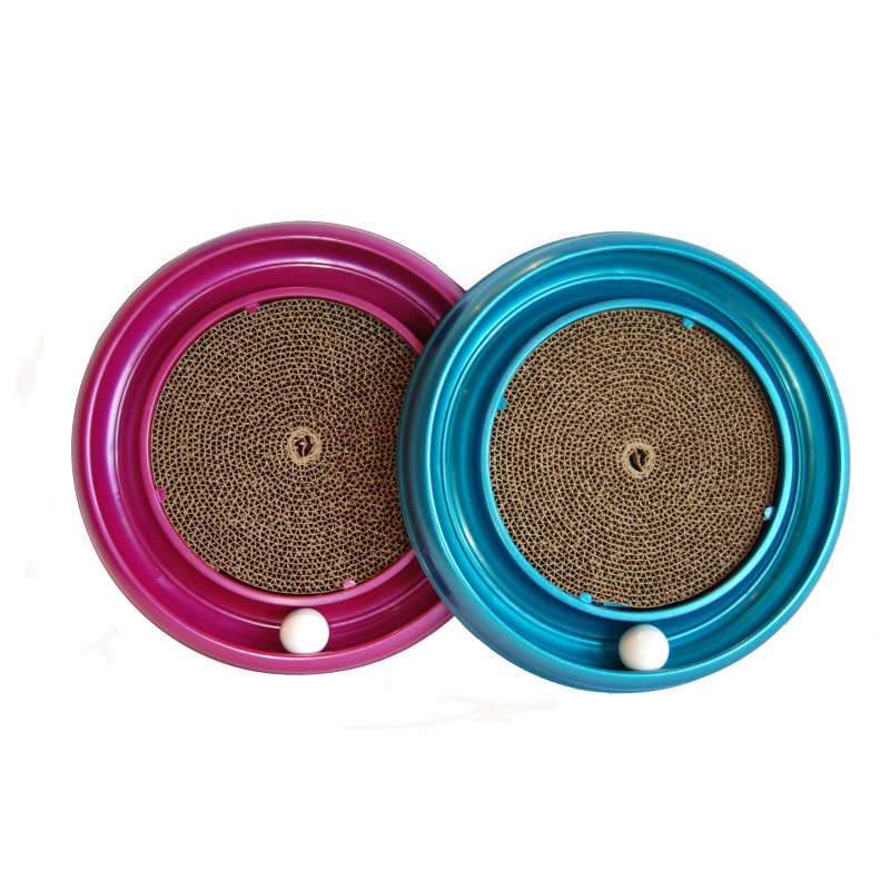 Catnip and ball included. Scratch pad is replaceable. 16” Diameter x 1.88”