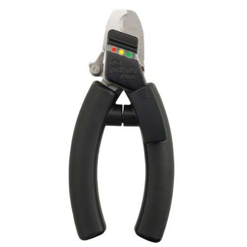 The new QuickFinder deluxe is a nail clipper for larger dogs that utilizes QuickSensor Technology that senses your pet's quick and gives visual clues as to when it is safe and when it is not safe to begin clipping. Red-Yellow-Green. Green means Go! It is fast, safe and easy to use. QuickSensor senses with a circuit-board precision, when it is safe to cut, when to be cautious, and when it is not safe to cut.
