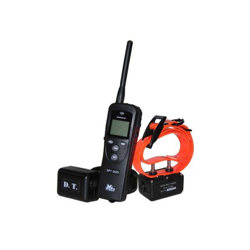 All SPT 2400 series have completely waterproof and rechargeable (Ni-MH batteries) transmitter and collar units, an easy-to-read LCD screen with a low battery indicator, and a 2400 yard (1.3 mile) range. Also included on all SPT 2400 series are the Jump, Rise, Nick, and Continuous Stimulations, as well as Vibration. The SPT 2430 and 2432 (2-dog system) add a beeper/trainer to the already feature-loaded SPT 2400 series.